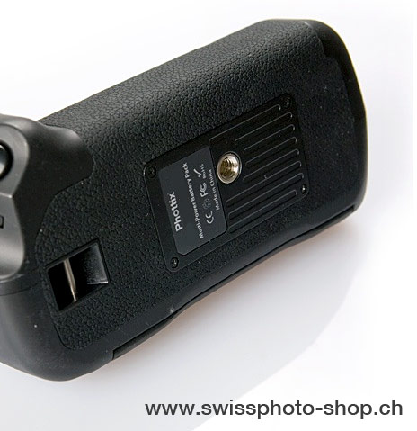 Der Phottix Batteriegriff BG-D3200 hat ein Metall-verstärktes Stativgewinde an der Unterseite.