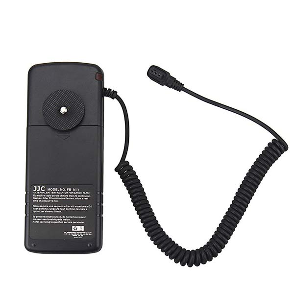 Das JJC Batteriepack nur 210 gr. leicht und angenehm am Gurt oder unter der Kamera befestigt zu tragen. Über eine Rändelschraube kann das Batteriepack an der Kamera angeschraubt werden und wird mit dem im Set enthaltenen Spiralkabel mit dem Blitzgeräte verbunden.