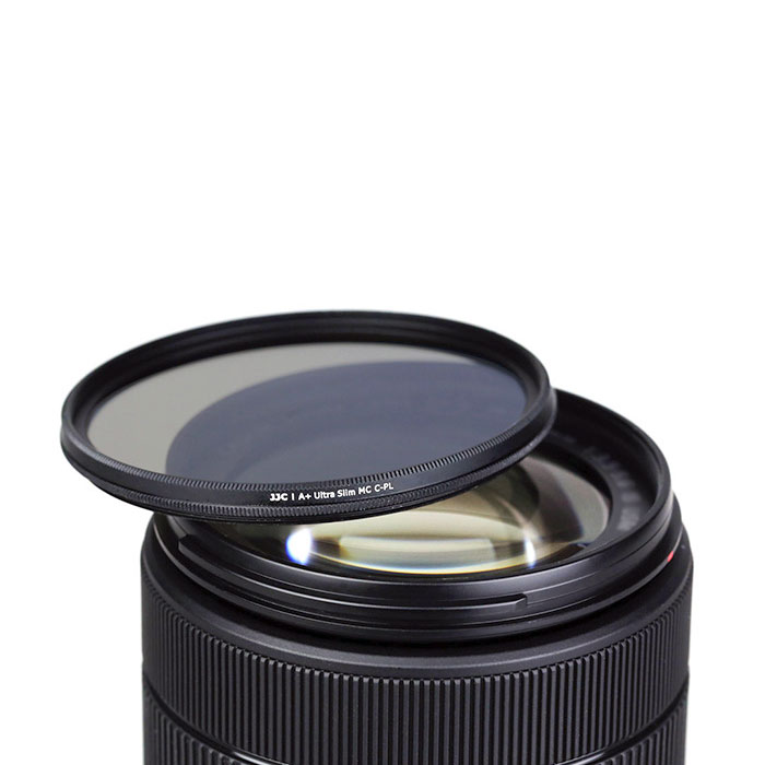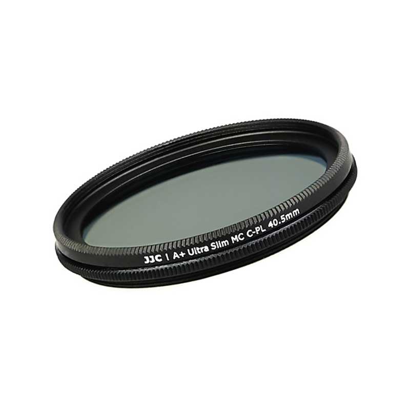 40.5mm Polfilter, JJC A+ CPL MC ultradünn. Zirkularer Polarisationsfilter aus optischem Glas mit 6-facher Vergütung. Erhöht Farbsättigung, ermöglicht tiefblaue Himmel, verbessert Wolken, reduziert Reflexionen.