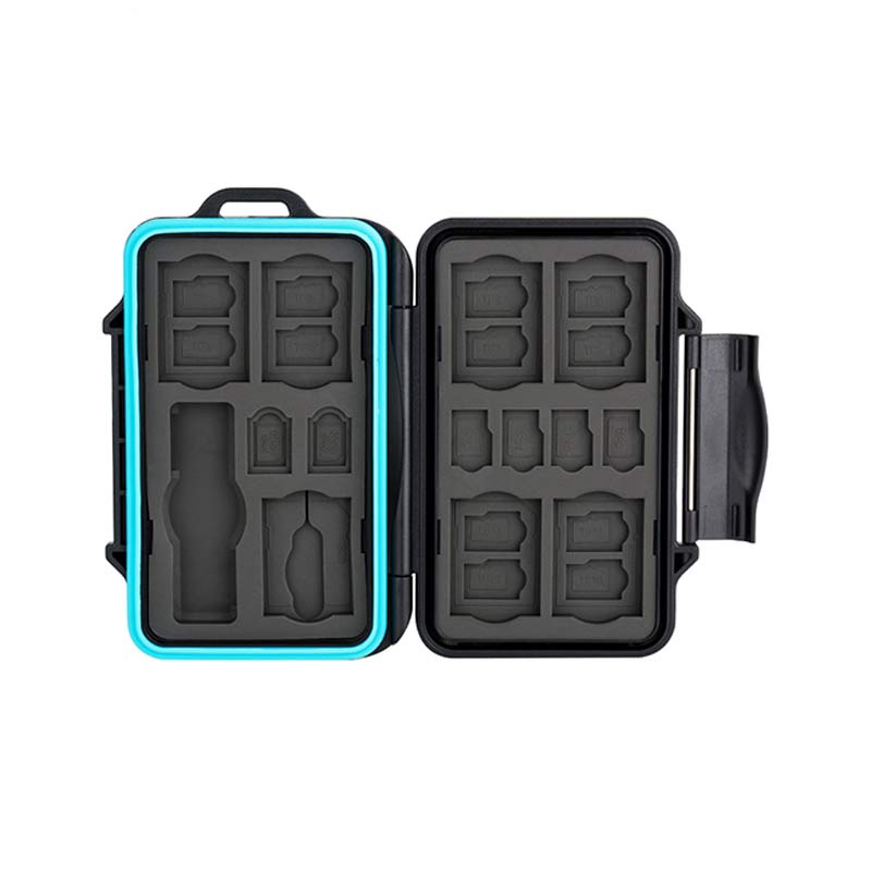 JJC MCR STS27 Safe Box für Speicher-Karten. Sicheren Transport inkl. SD- und Micro SD Kartenleser JJC USB SD MSD. Platz für 7 SD Karten, 16 TF, 2 Nano und 2 Micro Karten. Stabil, sicher und wasserresistent.