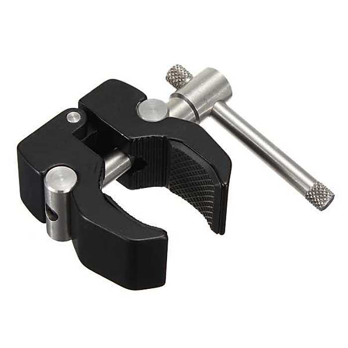 Der Super Clip Clamp kann an jedem Stativ oder einer Tür, Tischplatte mit diversen Befestigungsmöglichkeiten montiert werden. z. B. einen 3/8 Zoll oder einem 1/4" Innengewinde.