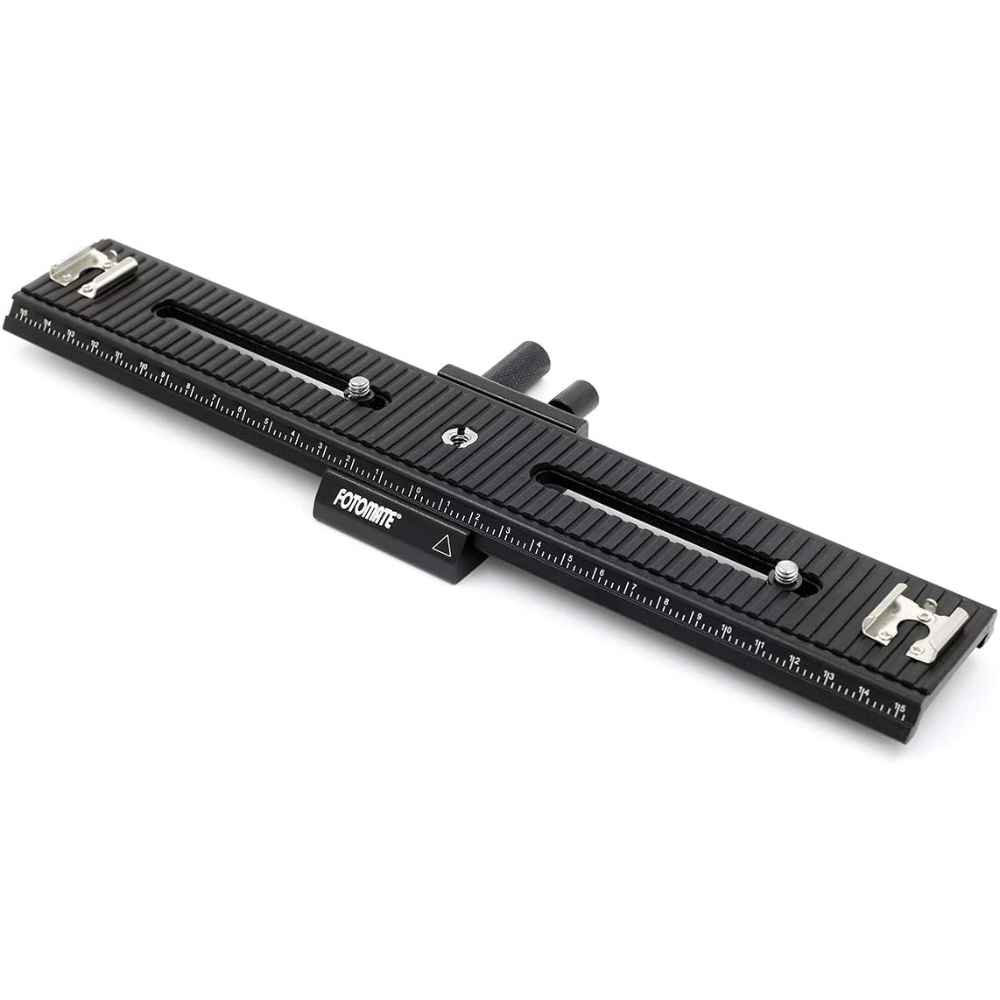 Makroschlitten 310mm für präzises Einstellen der Kamera-Position bei Makroaufnahmen. 2 Stück ergeben Kreuz-Makroschlitten. Stabile Metall-Ausführung.