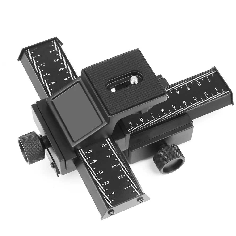 Kreuz-Makroschlitten aus Metall und Kunststoff, präzises Scharfstellen sorgt für kreatives Arbeiten bei Makroaufnahmen oder Produktfotografie.
